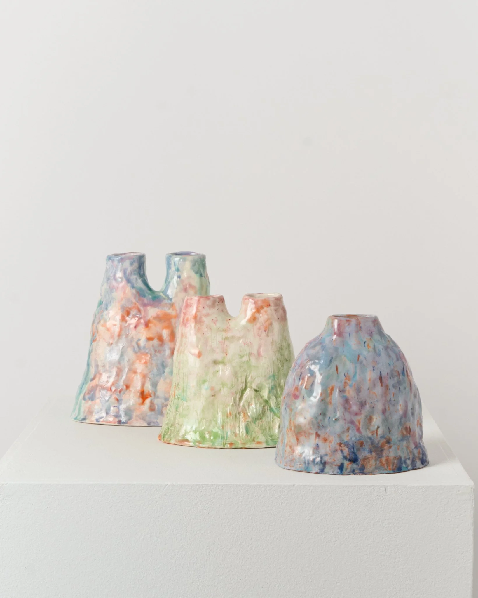 Camille Romagnani Multicolor Faience unique piece sculpture Dimensions: H 19,5 x 18,5 x 11 cm Available to hire & purchase