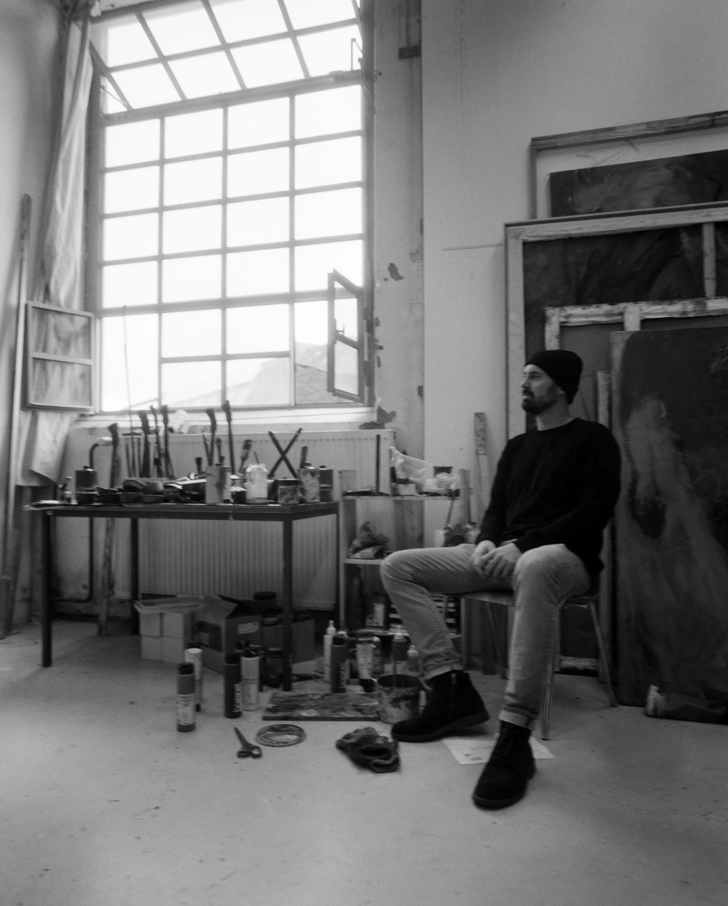 Tim Leimbach was born in Wuppertal, NRW. After studying architecture and working as a drummer/songwriter, he moved to Berlin in 2016 to study painting.